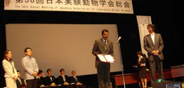 Japanese Association for Laboratory Animal Science (JALAS) awarded the prestigious JALAS International Award (2007) to Dr. Mahesh Kumar J, Centre for Cellular and Molecular Biology, Hyderabad. He has received this prestigious award during 55th annual meeting of JALAS that was held at Miyagi, Japan on May 15-17, 2008 for his abstract entitled "A mouse model for Luminal epithelial like ER positive subtype of human breast cancer