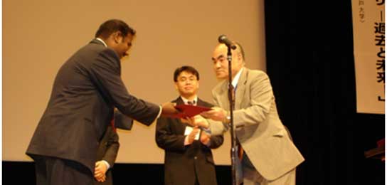 Japanese Association for Laboratory Animal Science (JALAS) awarded the prestigious JALAS International Award (2009) to Harikrishnan. V.S, Bio Medical Technology wing, Sree Chitra Tirunal Institute for Medical Science and Technology, Thiruvananthapuram, Kerala. He has received this prestigious award during 57th annual meeting of JALAS that was held at Kyoto, Japan on May 12-14, 2010 for his abstract entitled "Pre-Clinical evaluation of a vascular graft in sheep carotid artery model- An effective method of Cerebral protective Anesthesia, with Mechanical Positive Pressure Ventilation"